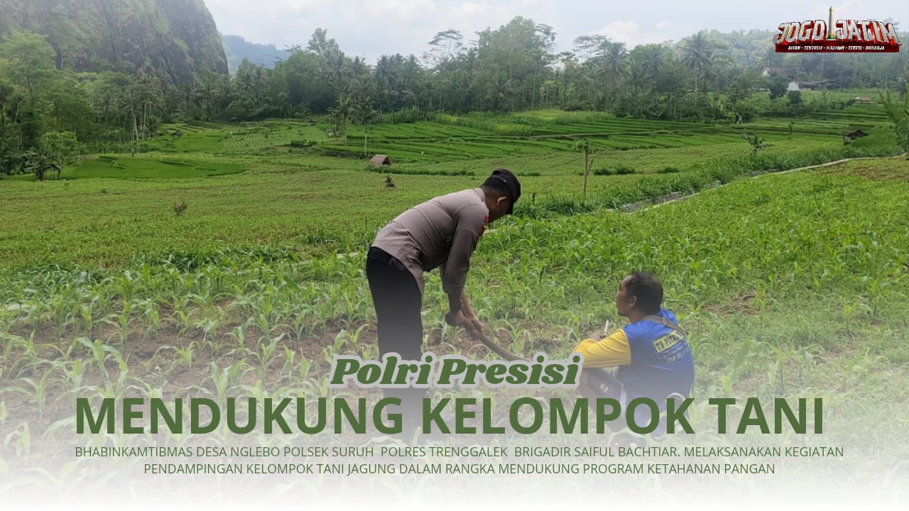 Dan kali ini Bhabinkamtibmas Desa Nglebo Polsek Suruh Polres Trenggalek, Brigadir Saiful Bachtiar melaksanakan pendampingan kelompok tani jagung dalam Program Ketahanan Pangan Desa Nglebo Kecamatan Suruh dalam rangka mendukung Program Ketahanan Pangan.